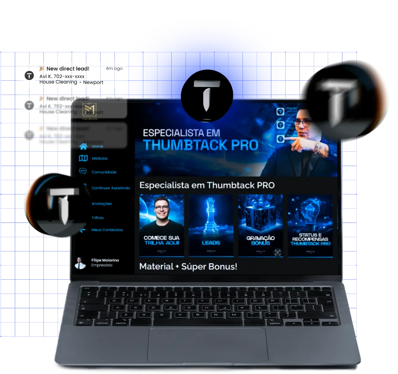 Hoje eu tenho uma previsibilidade de caixa na minha empresa que me permite planejar com segurança, investir em novas oportunidades de crescimento, e até mesmo expandir meu time sem a preocupação constante de como atrair mais clientes. Tudo isso graças ao domínio das estratégias certas no Thumbtack.